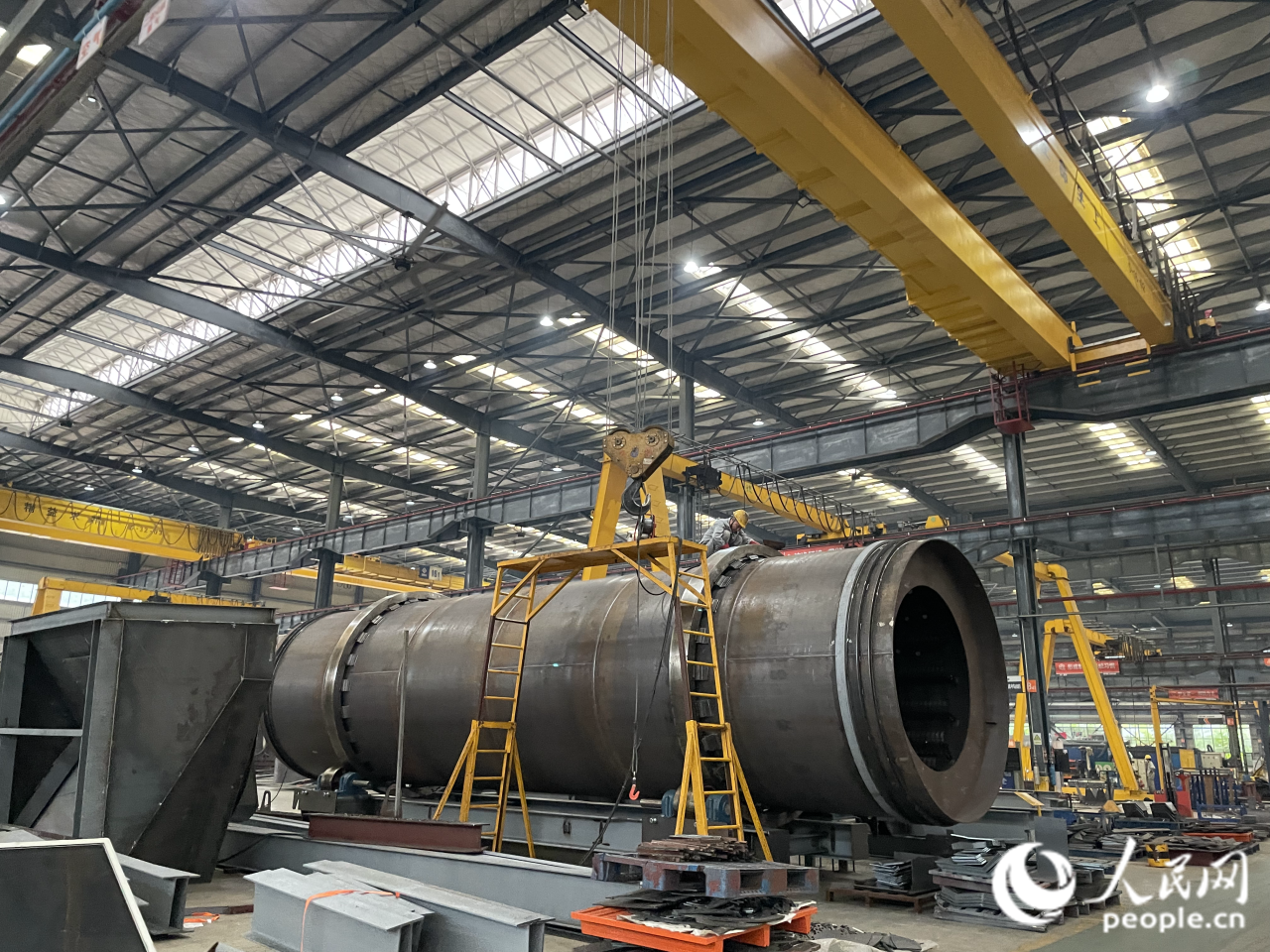 铁拓机械生产车间中有不少“大家伙”。人民网记者 林盈摄