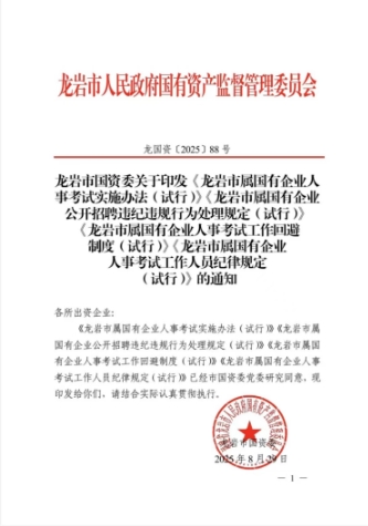 为从根源上破解此类问题,龙岩市国资委坚持制度先行,系统构建涵盖招聘全流程的“一揽子”制度体系。从《人事管理办法》到《考试实施办法》,从违纪处理规定到回避制度,覆盖人事管理与招聘全流程的各项制度、文件如同精密的齿轮,环环相扣,相互衔接,形成严密闭环。