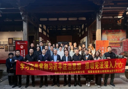 福建高速集团党委学习(扩大)会深入学习贯彻习近平总书记对全面依法治国工作的重要指示精神,组织领导干部学习《习近平法治思想学习纲要》,强化“关键少数”的法治思维;组织参观《档案里的隐蔽荣光——吴石的家国情怀》特展,将红色基因传承与宪法精神弘扬紧密结合;融媒体中心发布原创普法视频《宪法守护“福路”平安》。