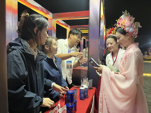 (图注:工作人员为现场群众推介福盐集团系列产品)