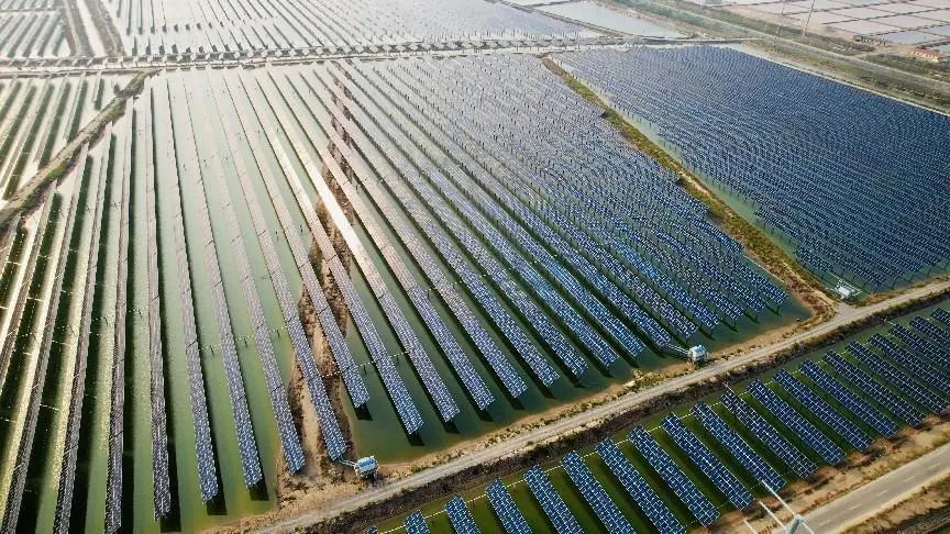 华润红光渔业800MW光伏项目为国家首批大型风电、光伏基地项目,总投资37.75亿元,项目充分利用鱼塘水域面积,将光伏发电和生态养殖相结合,形成“水上发电、水下养殖、兼顾生态旅游”的产业模式,实现了光伏发电与水产养殖的完美融合以及土地资源的高效利用和绿色发展。
