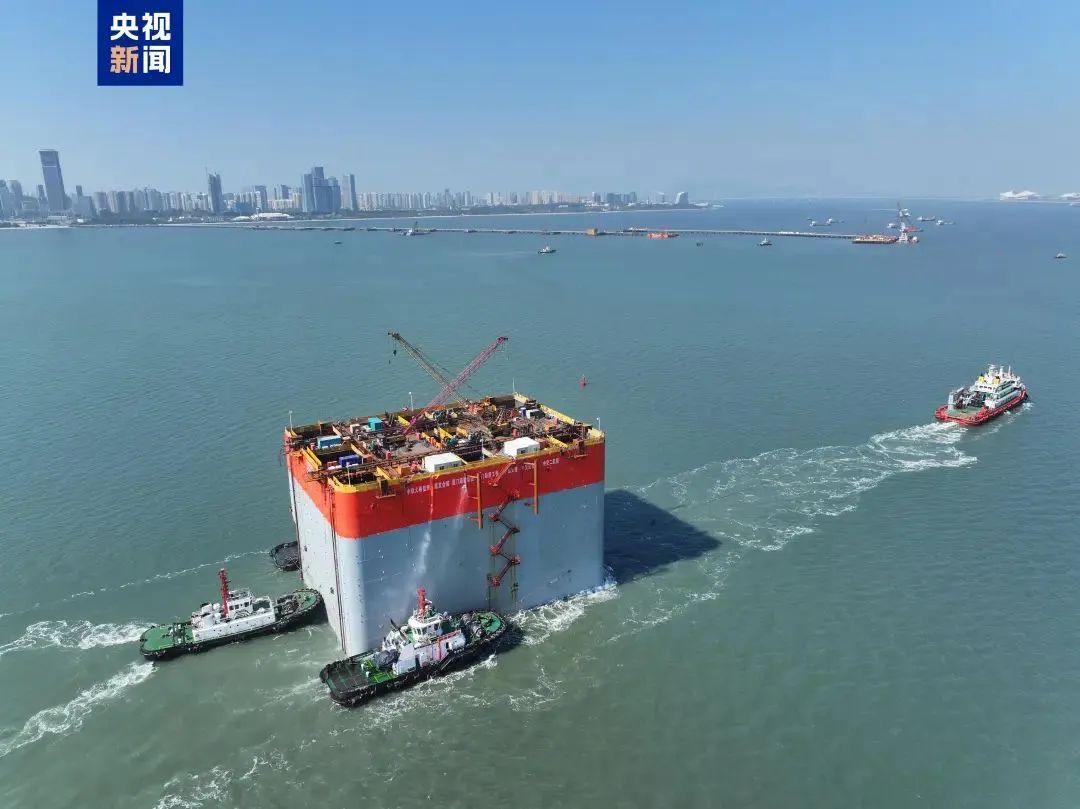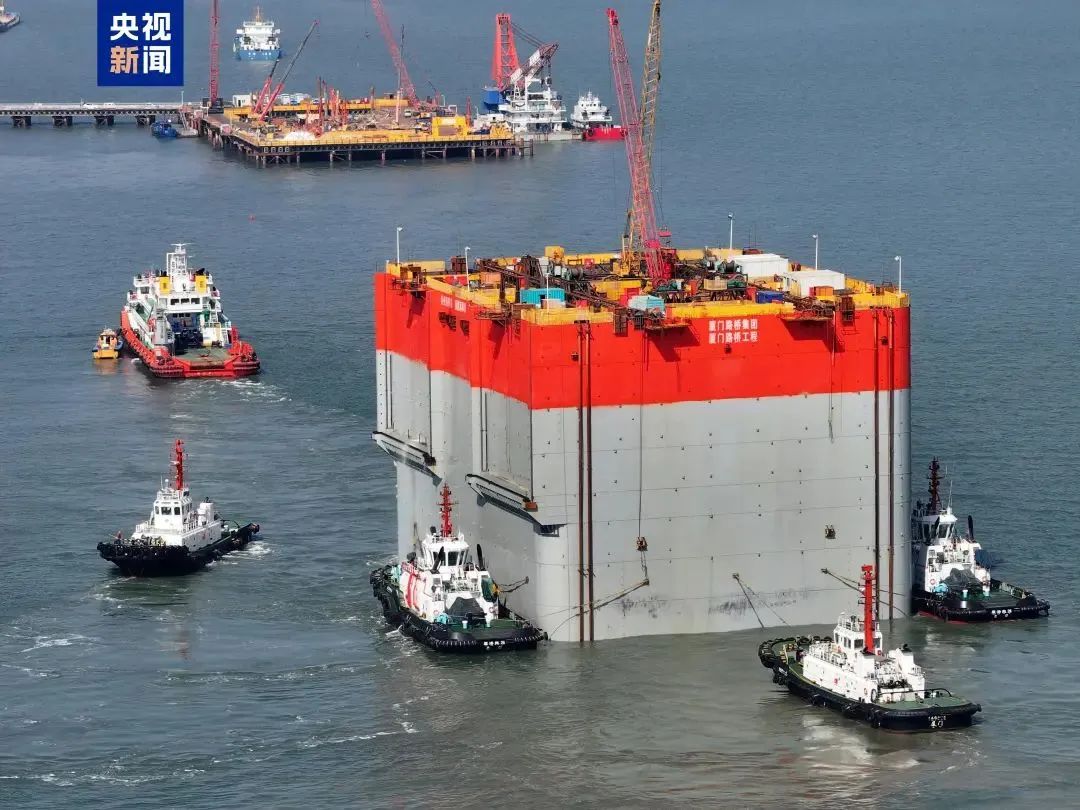 厦金大桥(厦门段)刘五店航道桥最后一个钢沉井就位,大桥“基石”全面形成