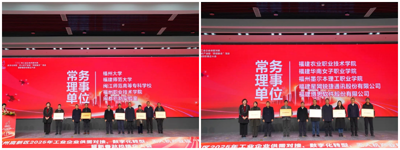 大会宣读《关于对2024年度福州高新区纳税大户给予表扬的通报》,为纳税大户、数字经济市域产教联合体理事单位授牌。