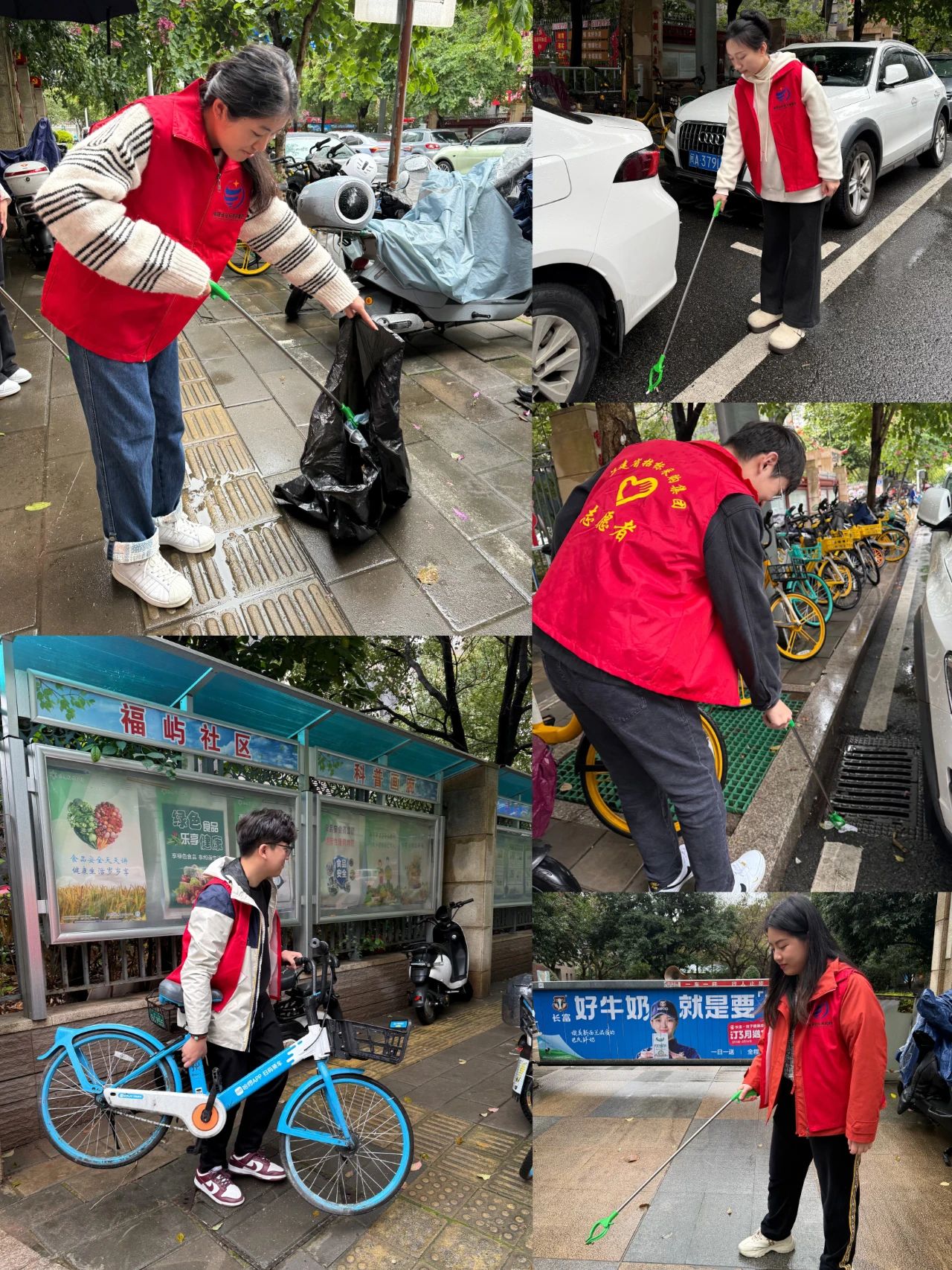 现场,志愿者们对街道上随意停放的自行车、电动车进行整理,同时分成若干小组,沿着社区的道路两旁,对路面上的废弃物、塑料袋、烟头等垃圾进行清理。大家热情高涨、干劲十足,整个活动过程细致、有序。