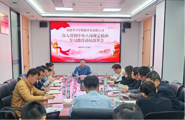 3月28日,福建省卫星数据开发有限公司党委书记、总经理郑志煌主持召开党委(扩大)会议,认真学习习近平总书记关于深入贯彻中央八项规定精神学习教育的重要讲话和重要指示精神,学习中央八项规定及其实施细则精神等,部署开展学习教育。会议要求,公司各级党组织要坚决把思想和行动统一到党中央决策部署上来,结合工作实际,全面查摆整改11个方面突出问题,坚持“当下改”与“长久立”相结合,健全作风建设常态化长效化制度机制,高标准高质量抓好中央八项规定精神贯彻落实。
