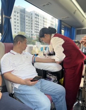 11月7日,省国资委组织开展2025年“为党旗增辉•为生命接力”无偿献血活动,干部职工踊跃参与,奉献爱心。活动现场,医务人员引导干部职工有序完成登记、验血等流程。大家纷纷表示,无偿献血光荣而有意义,今后将继续支持公益,带动更多人加入。
