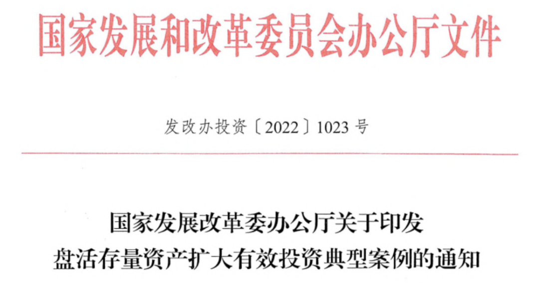 近日,按照《国务院办公厅关于进一步盘活存量资产扩大有效投资的意见》(国办发〔2022〕19号)要求,为充分发挥典型案例示范带动作用,推动有关方面加大工作力度,采取多种方式盘活存量资产、扩大有效投资,我委组织征集和评估筛选了一批盘活存量资产扩大有效投资典型案例。具体名单如下: